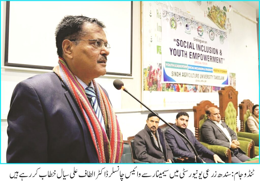 ٹنڈوجام (پریس ریلیز) سندھ زرعی یونیورسٹی ٹنڈوجام کے وائس چانسلر پروفیسر ڈاکٹر الطاف علی سیال نے کہا ہے کہ موجودہ دور محض تعلیمی اسناد کا نہیں بلکہ عملی مہارتوں، پیشہ ورانہ قابلیت اور نجی شعبے کے ساتھ مضبوط روابط کا تقاضا کرتا ہے۔انہوں نے کہا کہ ملک کی آبادی 24 کروڑ سے تجاوز کر چکی ہے، جس کے باعث روزگار کے مواقع، بنیادی سہولیات اور قدرتی وسائل پر مسلسل دباؤ بڑھ رہا ہے، جبکہ سالانہ تقریباً 2.5 فیصد کی شرح سے آبادی میں اضافہ معاشی ترقی اور وسائل کے مؤثر انتظام میں ایک بڑی رکاوٹ بن چکا ہے۔ انہوں نے نوجوانوں پر زور دیا کہ وہ خود کو تعلیم، مارکیٹ سے ہم آہنگ مہارتوں، روزگار کی تیاری اور فیصلہ سازی کے پلیٹ فارمز میں بامعنی شمولیت کے لیے تیار کریں۔وہ سندھ زرعی یونیورسٹی میں اسٹوڈنٹ ٹیچر انگیجمنٹ پروگرام (STEP) کے تحت منعقدہ سیمینار “سماجی شمولیت اور نوجوانوں کا بااختیار بنانا” سے خطاب کر رہے تھے، جس میں سندھ ہائر ایجوکیشن کمیشن اور ہائر ایجوکیشن کمیشن اسلام آباد نے تعاون فراہم کیا۔ڈاکٹر الطاف سیال نے ملکی معاشی صورتحال پر روشنی ڈالتے ہوئے کہا کہ عالمی مالیاتی دباؤ، قدرتی آفات اور محدود معاشی اصلاحات کے باعث ملک میں غربت میں دوبارہ اضافہ دیکھنے میں آیا ہے اور حالیہ برسوں میں غربت کی شرح تقریباً 25 فیصد تک پہنچ چکی ہے۔انہوں نے کہا کہ غذائی تحفظ بھی ایک سنگین قومی مسئلہ بنتا جا رہا ہے۔ اگرچہ پاکستان گندم اور چاول جیسی بنیادی اجناس میں بڑی حد تک خود کفیل ہے، تاہم خوراک تک رسائی اور مناسب غذائیت اب بھی ایک بڑا چیلنج ہے۔انہوں نے سماجی شمولیت کو پائیدار قومی ترقی کی بنیادی شرط قرار دیتے ہوئے کہا کہ نوجوانوں کو بااختیار بنانے کا عمل صرف نعروں تک محدود نہیں ہونا چاہیے بلکہ اسے عملی مواقع میں ڈھلنا چاہیے، تاکہ نوجوان اپنی صلاحیتوں کو نکھار سکیں اور انہیں مؤثر انداز میں بروئے کار لا سکیں۔ انہوں نے کہا کہ جامعات پر یہ اہم ذمہ داری عائد ہوتی ہے کہ وہ سماجی طور پر ذمہ دار، پراعتماد اور باصلاحیت گریجویٹس تیار کریں جو موجودہ معاشی اور سماجی چیلنجز کا کامیابی سے مقابلہ کر سکیں۔چیئرمین STEP پروفیسر ڈاکٹر محمد اسماعیل کمبھر نے کہا کہ موسمیاتی تبدیلی اور زرعی پیداواری صلاحیت میں کمی کے باعث سندھ سمیت ملک بھر میں معاشی دباؤ میں اضافہ ہو رہا ہے، جس کا براہِ راست اثر نوجوانوں پر پڑے گا اور ان پر ذمہ داریوں کا بوجھ مزید بڑھ جائے گا۔انہوں نے کہا کہ سندھ کے نوجوانوں میں بے پناہ صلاحیت موجود ہے، تاہم اس صلاحیت کو بروئے کار لانے کے لیے منظم رہنمائی، سرپرستی اور جامع پالیسیوں کی اشد ضرورت ہے۔ انہوں نے زور دیا کہ طلبہ اور اساتذہ کے درمیان مکالمے پر مبنی روابط نوجوانوں میں تنقیدی سوچ، قیادت اور شہری ذمہ داری کے فروغ میں اہم کردار ادا کرتے ہیں۔ڈاکٹر تحسین فاطمہ میانو نے “نوجوانوں کے لیے فوڈ باسکٹ” کے تصور پر روشنی ڈالتے ہوئے کہا کہ غذائیت، غذائی تحفظ اور بااختیاری ایک دوسرے سے گہرا تعلق رکھتے ہیں۔ انہوں نے کہا کہ سستی اور غذائیت سے بھرپور خوراک تک رسائی طلبہ کی جسمانی اور ذہنی نشوونما کے لیے نہایت ضروری ہے۔دیگر مقررین جن میں ڈاکٹر سہیل احمد اوٹھو، میر راحب تالپور اور فاطمہ نظامانی شامل تھیں، نے بھی سماجی شمولیت، صنفی مساوات اور نوجوانوں کی فعال شرکت پر زور دیا اور ایسے تعلیمی ماحول کی ضرورت اجاگر کی جو تنوع، مساوی مواقع اور طلبہ کی بھرپور شمولیت کو فروغ دے۔تقریب میں طلبہ اور اساتذہ کی بڑی تعداد نے شرکت کی جبکہ پروگرام کا اختتام ایک بھرپور سوال و جواب کے سیشن پر ہوا۔