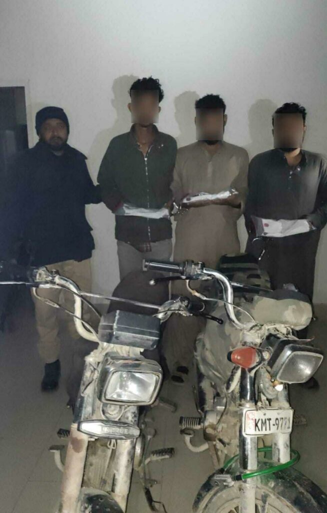 ایس ایس پی کے مطابق گرفتار ملزمان کے قبضے سے تین پستول، چھینے گئے موبائل فون اور دو موٹر سائیکلیں برآمد کر لی گئی ہیں۔ برآمد ہونے والی موٹر سائیکلوں میں سے ایک موٹر سائیکل تھانہ پاکستان بازار کی حدود سے چھینی گئی تھی۔