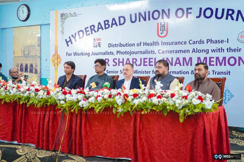 انہوں نے کہا کہ سندھ حکومت نے صوبے بھر میں جدید سرکاری اسپتال قائم کیے ہیں جہاں ہر شخص کو بلاامتیاز مفت علاج فراہم کیا جا رہا ہے۔ انہوں نے بتایا کہ تین سال قبل انہیں دل کا دورہ پڑا تو ان کا علاج حیدرآباد کے این آئی سی وی ڈی میں ہوا جہاں مکمل میرٹ پر اسٹنٹس ڈالے گئے۔ ان کا کہنا تھا کہ کراچی میں بھی ملک کی بڑی طبی سہولیات مفت دستیاب ہیں، جن میں اعضا کی پیوندکاری تک شامل ہے، اور دیگر صوبوں سے آنے والے مریض بھی ان سہولیات سے مستفید ہو رہے ہیں۔صحت سب سے قیمتی اثاثہ ہے، اسی لیے صحافیوں کو ہیلتھ کارڈز فراہم کیے گئے۔ آئندہ بھی صحافیوں کی سہولیات کے لیے کام جاری رکھا جائے گا اور رکے ہوئے منصوبوں کو فوری حل کیا جائے گا۔