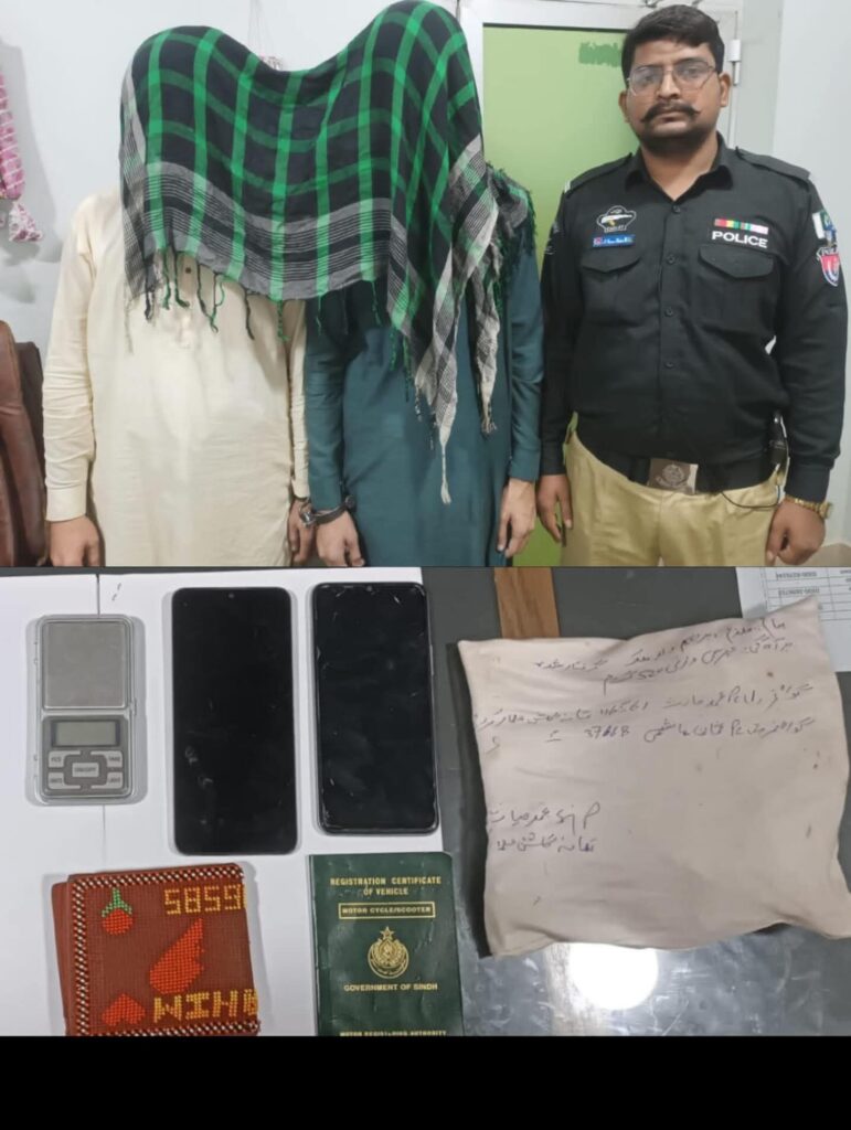 پولیس نے خفیہ اطلاع پر کارروائی کرتے ہوئے ثناءاللّٰہ ولد ارسلان اور ابراہیم ولد ملک کو گرفتار کیا۔ ملزمان کے قبضے سے پسٹل بمعہ ایمونیشن، آدھا کلو سے زائد چرس، موبائل فون اور نقدی برآمد ہوئی۔