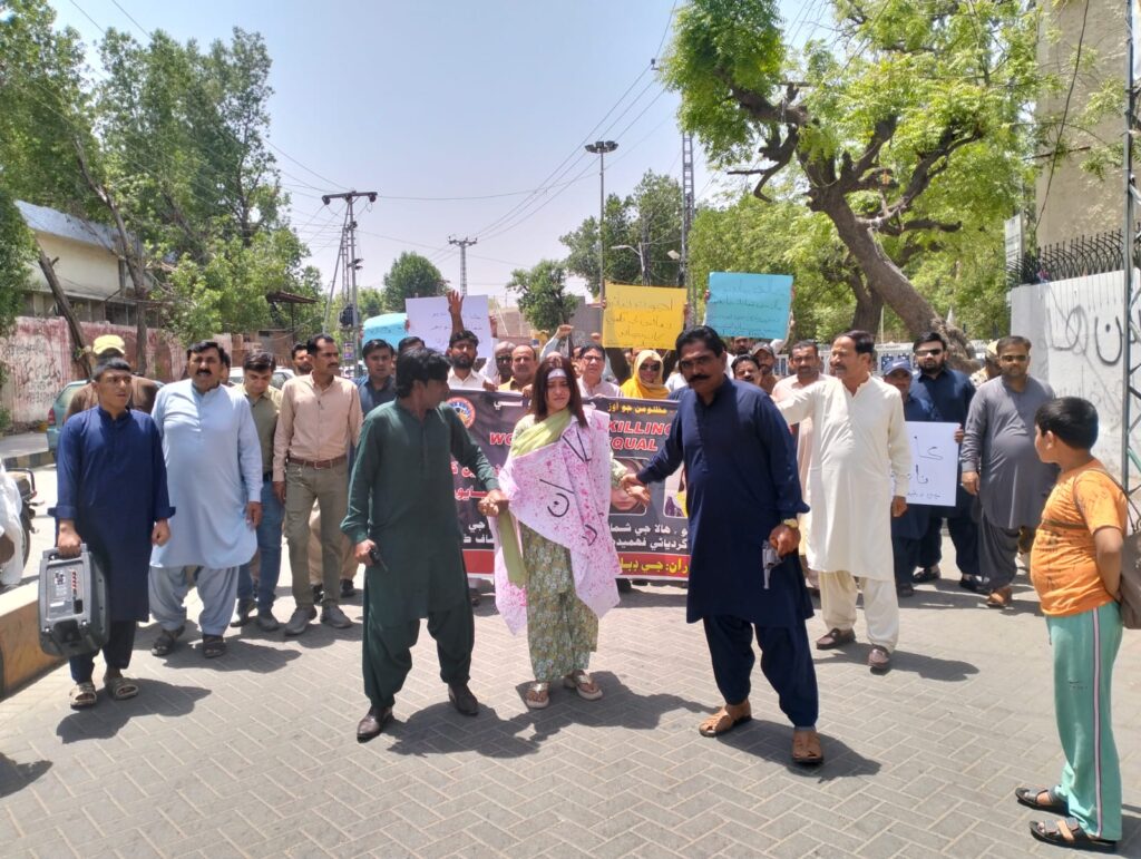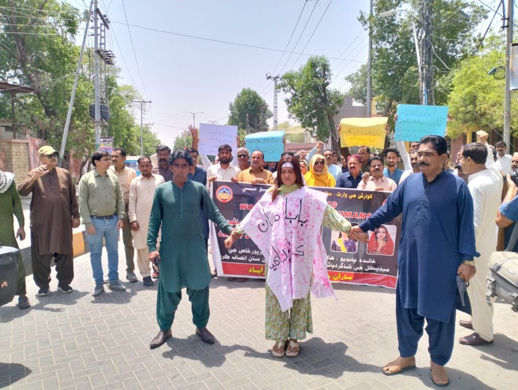 حیدرآباد(بیورو رپورٹ) سندھ کے مظلوم عوام کے حقوق کیلئے آواز بلند کرنے والی سماجی تنظیم جرنلسٹس رائٹرز سول سوسائٹی فار ٹرتھ پیس اینڈ جسٹس مرکز کی اپیل پر سندھ میں کاروکاری کے قبیح عمل اور سندھ کے تعلیمی اداروں میں طالبات کو ہراساں کرنے کے خلاف ریڈیو پاکستان حیدرآباد سے حیدرآباد پریس کلب تک احتجاجی ریلی نکالی گئی اور مظاہرہ کیا گیا جس میں خالدہ چانڈیو شمائلہ چانڈیو اور فہمیدہ لغاری کے قافلوں کو سخت سے سخت سزائیں دینے کا مطالبہ کیا گیا اس موقع پر جی ڈبلیو سی کے مرکزی رہنمائوں ظفر ہکڑو شاہدہ راجپر فہیم ببر ضلعی صدر نیاز وگھیو نائب صدر الطاف کوٹی امداد سیلرو ن