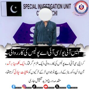 کراچی: گرفتار ملزم کی شناخت عرفان کے نام سے ہوئی، ایس ایس پی ایس آئی یو