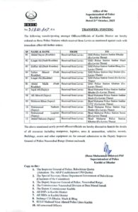 (رپورٹ ای این آئی)ضلع کچھی لیویز فورس پولیس میں ضم — ایس پی کچھی کا نوٹیفکیشن جاری مچ ضلع کچھی کی لیویز فورس کو باضابطہ طور پر پولیس میں ضم کر دیا گیا۔ اس حوالے سے ایس پی کچھی کی جانب سے باضابطہ نوٹیفکیشن جاری کر دیا گیا ہے جاری کردہ نوٹیفکیشن کے مطابق لیویز فورس کے زیرِ انتظام تمام تھانوں اور چیک پوسٹوں پر ایس ایچ اوز اور ہیڈ محررین کی تعیناتیاں عمل میں لائی گئی ہیں۔ ذرائع کے مطابق نئے نظام کے تحت لیویز فورس کی جگہ اب پولیس کے ضابطے اور اختیارات نافذ العمل ہوں گے، جبکہ ضلعی سطح پر سیکیورٹی نظم و ضبط اور امن و امان کے تمام امور پولیس کے ماتحت ہوں گےنوٹیفکیشن کے مطابق صدر پولیس تھانہ مچ لیاقت علی رئیسانی پولیس اسٹیشن صدر تھانہ بھاگ ناڑی ظفر علی پولیس اسٹیشن حاجی شہر سلطان احمد پولیس اسٹیشن سنی لیاقت علی پولیس اسٹیشن کھٹن عبدالمالک تمام ایس ایچ اوز کی تعیناتی کے احکامات جاری کر دیے گئے ہیں