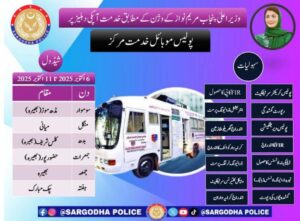 سرگودہا(رپورٹ بیورو)سرگودہا پولیس موبائل خدمت مرکز کی سہولیات آپ کی دہلیز پر ۔ڈی پی او سرگودھا محمد صہیب اشرف