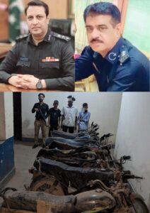 (رپورٹ محمد حسین سومرو)ڈسٹرکٹ سٹی: نبی بخش پولیس کی انٹیلیجنس بیسڈ ٹارگٹڈ کاروائی موٹر سائیکل لفٹنگ میں ملوث 4 رکنی گروہ گرفتار.
