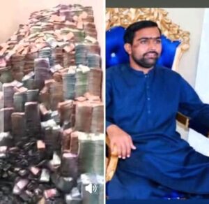 دادُو میں پیپلز پارٹی کے اھم رھنُما نوابزاده نويد احمد خان جمالی کے گاؤں والے ایک بنگلے پر نیب اور حساس اداروں کا چھاپہ بڑی مقدار میں سونے اور ھیروں کے زيورات مُختلف مُمالک کی کرنسی جس میں بیس لاکھ ڈالر ,ملائیشین رنگیٹ کے صندوق, درھم, دینار ,ریال, پانچ ارب روپئے پاکستانی کرنسی, اور پچیس ھزار والے پرائز بانڈز کے لا تعداد پیکٹ پکڑے گئے ھیں بارہ گھنٹے گُذرنے کے بعد بھی کرنسی کی تعداد کاؤنٹ نہیں کی جا سکی تمام علاقے کو گھیرے میں لے لیا گیا ھے زمین کے نیچے مزید رقم نکنلنے کی اُمید ظاھر کی جا رھی ھے …