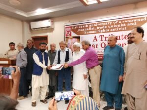پر یس کلب میں نثار عثمانی کی برسی کے موقع پر تقریب منعقد کی گئی جس میں ملک کے نامور شخصیات اور صحافی حضرات نے شرکت کی شرکاء نے مرحوم کی مغفرت کے لیے دعا مغفرت کی اور قابلِ قدر حضرات میں شیلڈ تقسیم کی گئی اے ایچ نیو ز کے سی ای او انور حسین کو پیشاور آ نہ صلاحیت پر حسنِ کارکردگی سے نوازا گیا