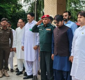 پھالیہ میں اسسٹنٹ کمشنر وحید حسن گوندل نے دیگر تحصیل انتظامیہ کے ہمراہ میونسپل کمیٹی کی عمارت پر پرچم لہرایا