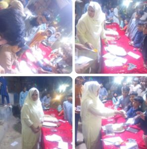 (آمین رپورٹ اسسٹنٹ ڈائریکٹر محمد آصف) قریشیالقریش وومن رائٹس ارگنائیدیشن اور پاک میمن ویلفیئر کی جانب سے پوری رات لنگر کی تقسیم اور لوگوں کو اور بٹھا کر حلوہ پوری کا لنگر کھلایا گیا بچوں اور لیڈیز کو پارسل میں دیا گیا جشن عید میلاد النبی کے موقع پر شازیہ سحر صاحبہ اپنے ہاتھوں سے لنگر تقسیم کرنے لگی ان کا کہنا تھا کہ اللہ ہمارا یہ عمل اپنی بارگاہ میں قبول و منظور فرمائے آمین رپورٹ اسسٹنٹ ڈائریکٹر محمد آصف قریشی