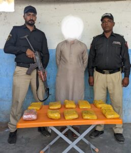 ملزم کے قبضے سے 12کلو گرام سے زائد چرس برآمد ہوئی۔